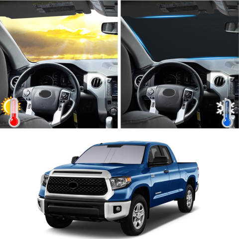 Tento skládací slunečník, navržený na míru pro čelní sklo Toyota Tundra 2014-2021, poskytuje optimální ochranu proti paprskům a snižuje teplo uvnitř vozidla. Jeho praktický design umožňuje rychlou instalaci a snadné uskladnění, zatímco prodlužuje životnost vašeho palubní desky.